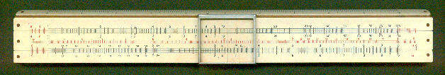 8. The same table, with several errors, appears on the cheap Lawrence rule made in the US. The Hemmi 40RK uses an identical scale and the Keuffel and Esser 4058W uses a similar technique but