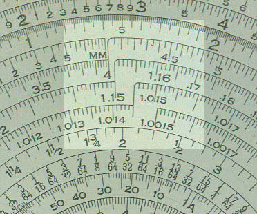 Scale. Set the long cursor at 5 on the Log Scale and the short cursor at the number of
